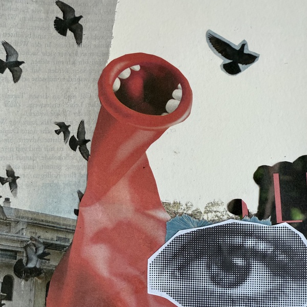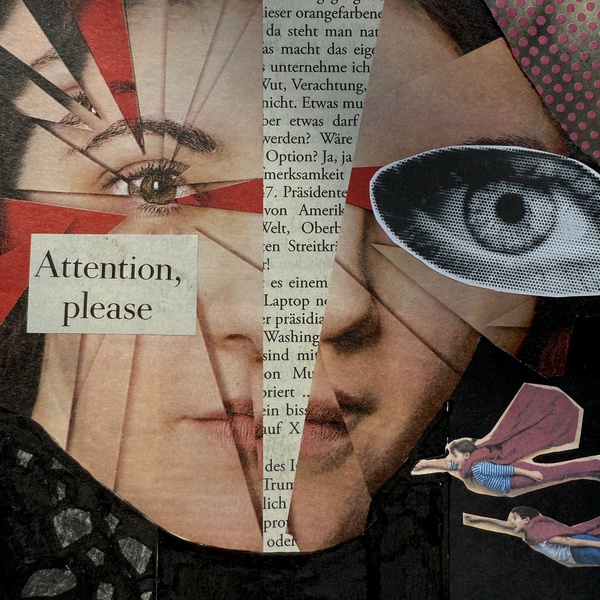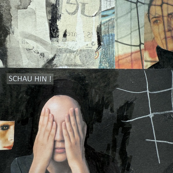 Gegen eine freiwillige Spende können Besucher:innen ausgewählte Collagen erwerben.
